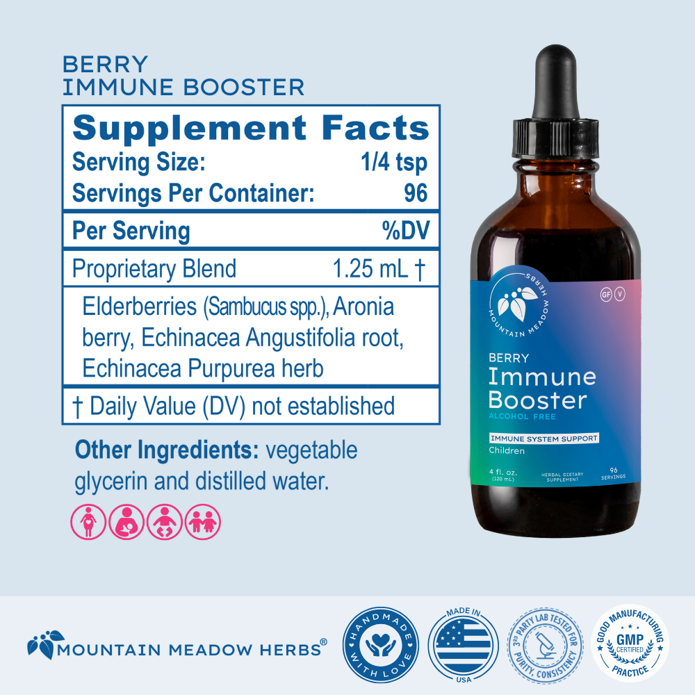 Like our original immune booster (Family Immune-Booster), our Kid’s Berry Immune-Booster contains nature’s greatest gifts for immune support, Elderberry, and two types of Echinacea. Sweetening the deal, in more ways than one, we’ve also added Aronia berry extract! Aronia berry provides for a sweeter, even better berry-like flavor your kids will love while providing an additional layer of support with powerful antioxidants to promote healthy cells.