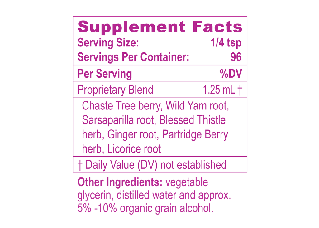 Chaste Tree berry: Chaste Tree berry has been well studied in clinical trials to support normal hormone levels, particularly progesterone. It is most commonly used for menstrual support, premenstrual syndrome, and menopause.