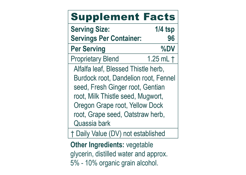 Gentian root & Quassia bark: Some of the most bitter of the bitter digestive tonics. They tone the digestive tract while increasing the production of digestive fluids and bile needed for an optimal cleanse and may help to support nutrient absorption. They also provide support for the liver and gallbladder and have antioxidant benefits to support healthy cells.