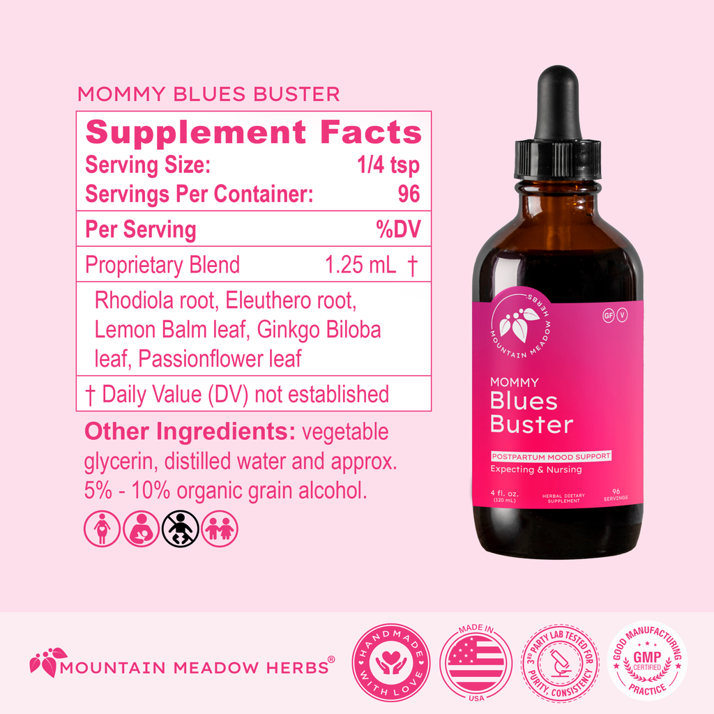Specially formulated for the expecting or nursing mother, these gentle adaptogenic herbs may have a positive effect on emotions. Certain herbs may help lift your spirits and bring you into a more refreshed state of mind. As new moms, you may experience some occasional sadness due to the various changes in your hormones. Blues Buster II can gently get your body back on track so that you can experience a positive effect on your emotions more often.