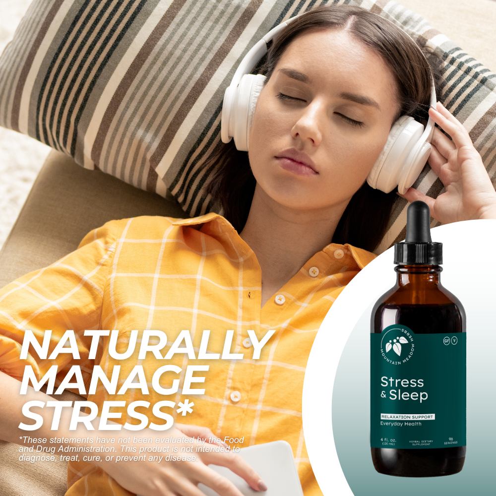 Stress & Sleep is safe and natural support for those of us who need a little help coping with stress in our lives. This product was developed with people going through short-term stressful situations in mind, such as planning a wedding or funeral for example. Many people find that their mind is racing at bedtime and they cannot seem to calm down and go to sleep.